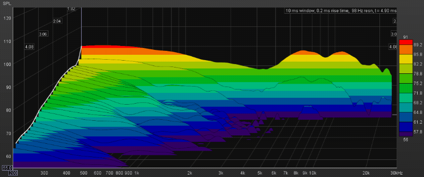 Also notice the “decay”, how much less vulnerable the driver is to “parasitics” like the basket wave, acoustic impedance, and all other variables influencing the driver. That is from the increased driver control.